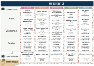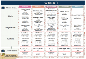 Week 1 menu will commence from Tuesday 6th January 2026 when all pupils return to school, and the menus will rotate each week thereafter.