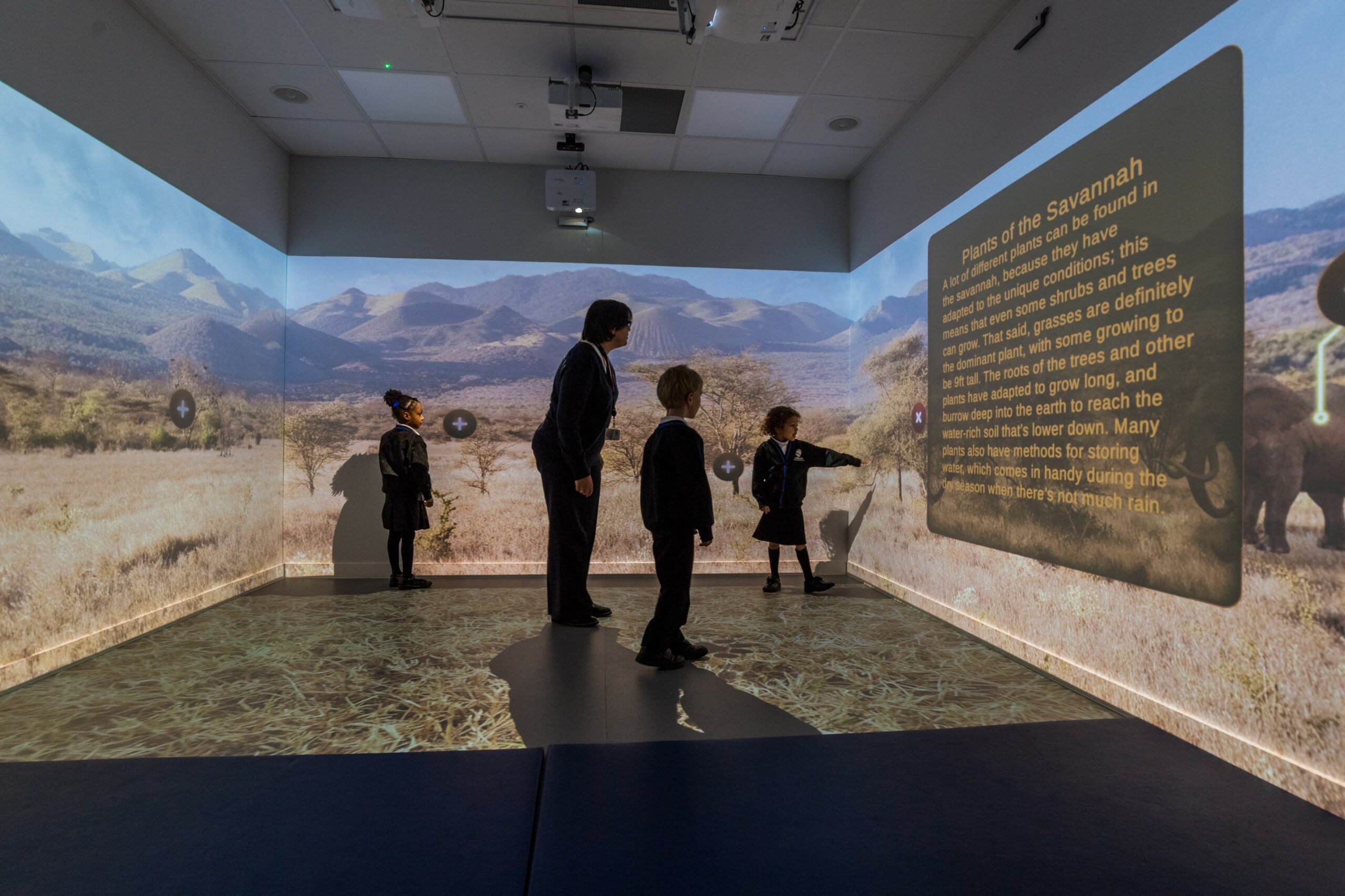 Our Immersive Room also enables learners to visit and experience places and times in a way that they are unable to do in a standard primary school and will enhance the themes and the learning that takes place. Themes such as ‘Trailblazers’, ‘Amazing Islands’, ‘Planet SOS’ and ‘The Globe’ will all benefit from them having carefully crafted lessons in this special learning space.